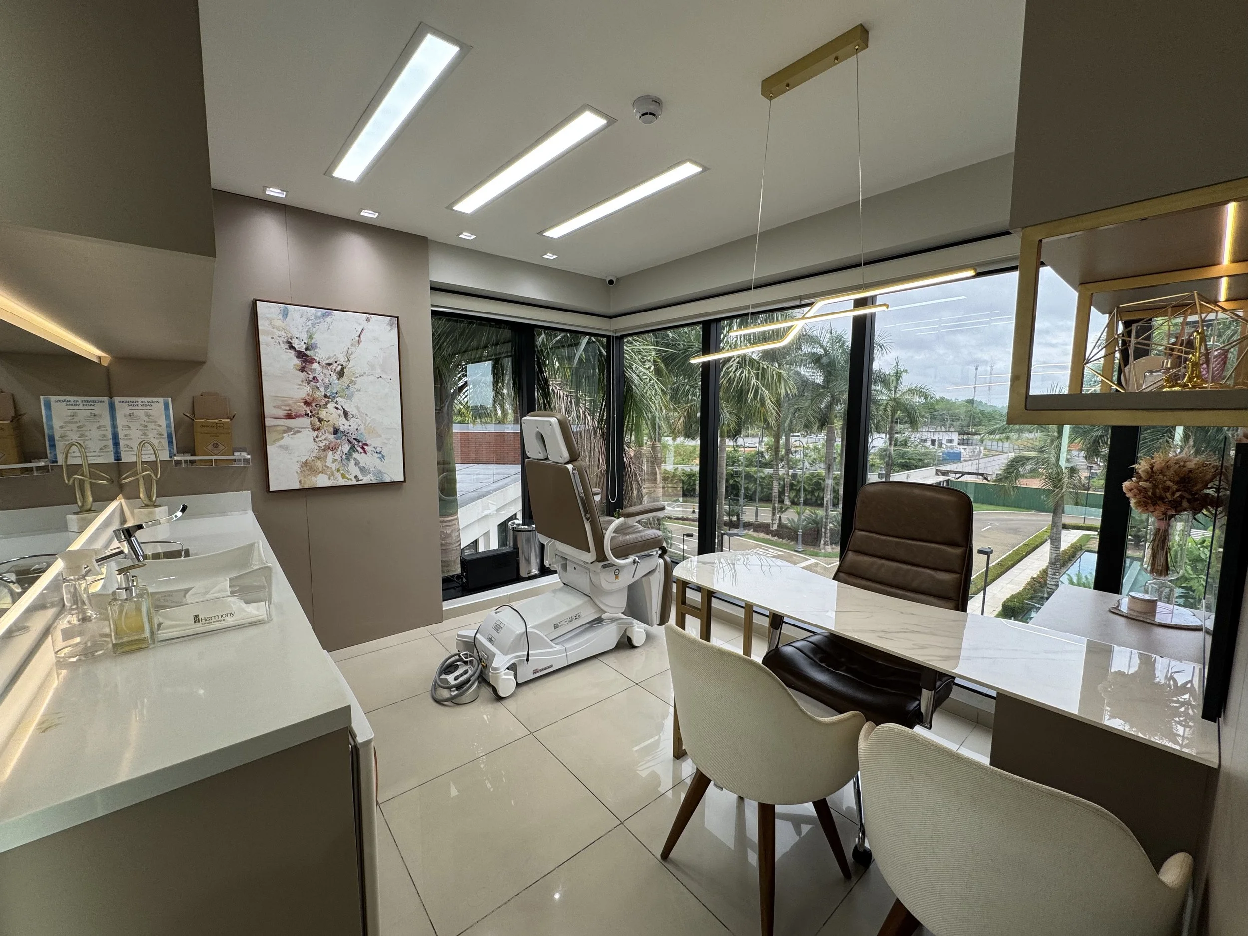 Pensando em biossegurança e suporte técnico, a sala conta com estrutura preparada para higienização, organização de materiais e apoio durante os procedimentos, assegurando conforto tanto para o profissional quanto para o cliente. Cada detalhe foi planejado para unir estética, funcionalidade e excelência no atendimento.
