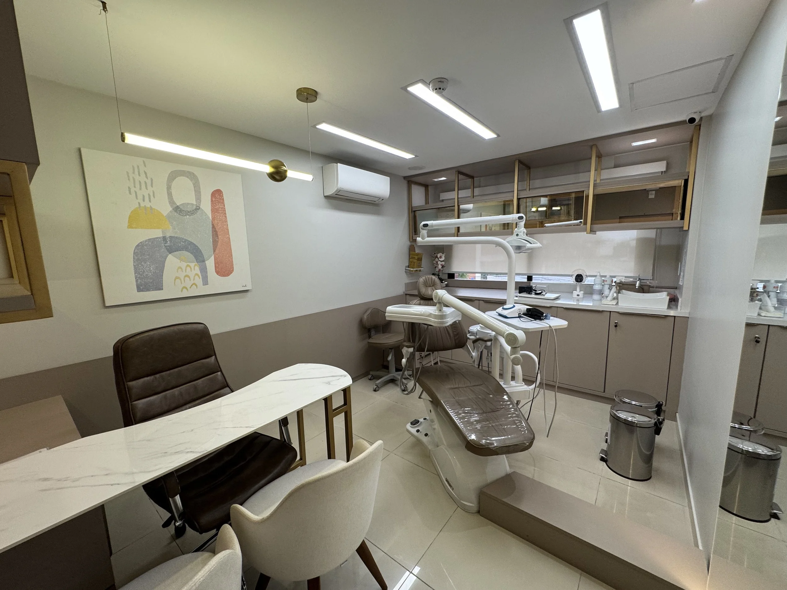 Pensada para atender às exigências da prática odontológica contemporânea, a sala dispõe de infraestrutura robusta para diagnóstico preciso, procedimentos clínicos de diferentes níveis de complexidade e processos completos de higienização e esterilização. O suporte técnico e a organização funcional do espaço contribuem para maior segurança, controle e tranquilidade na execução dos atendimentos.