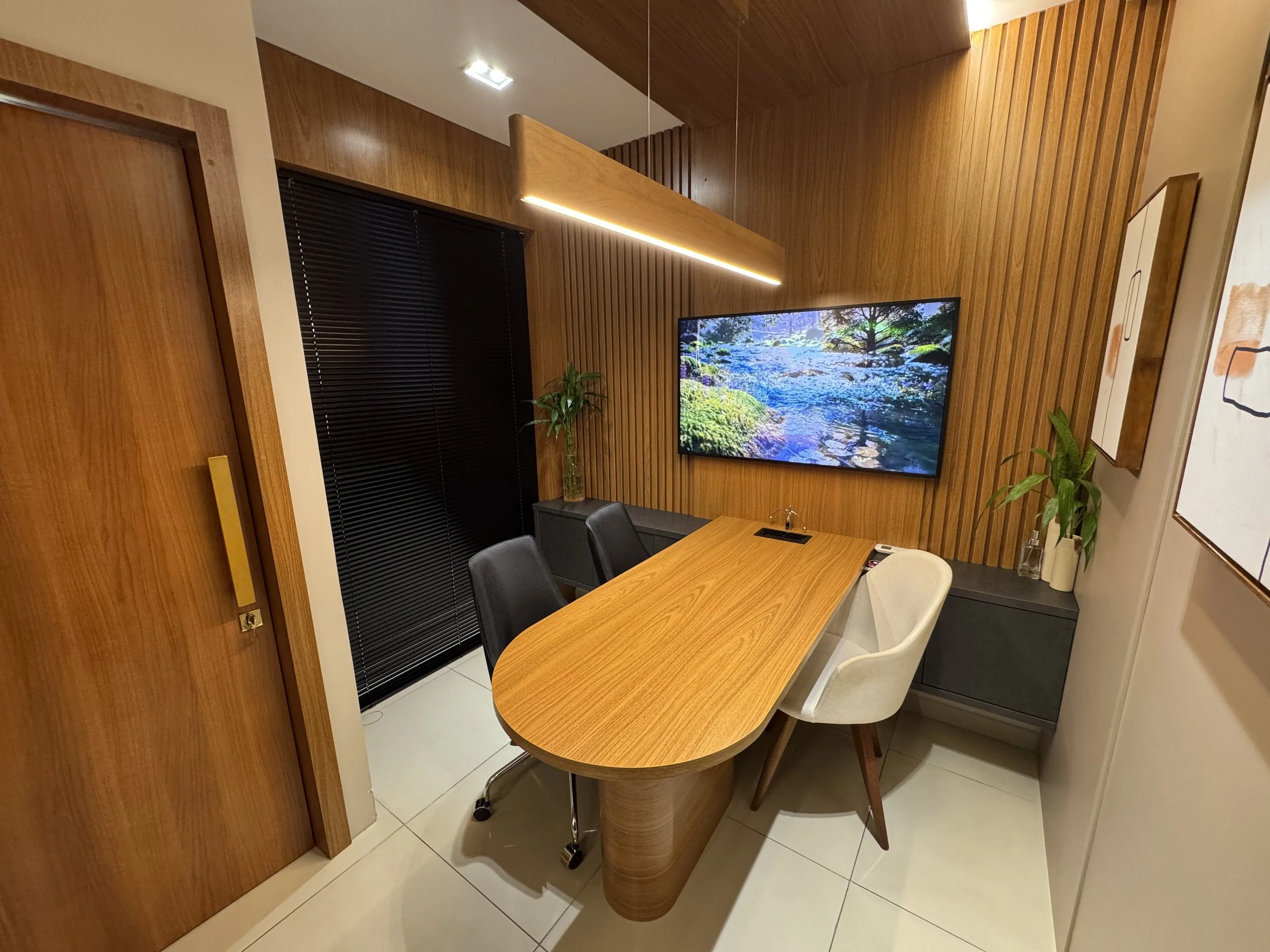 A estrutura foi pensada para proporcionar conforto tanto durante conversas mais detalhadas quanto em atendimentos que demandam maior formalidade. A disposição estratégica do mobiliário e dos recursos de apoio contribui para um ambiente reservado, agradável e altamente profissional.